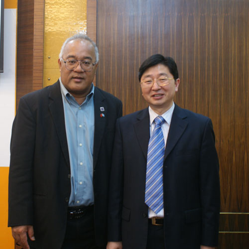 董事長(zhǎng)和密克羅尼西亞外交部長(zhǎng) 洛林?羅伯特合影- 原外交部副部長(zhǎng)駐美大使 現(xiàn)博鰲亞洲論壇周秘書(shū)長(zhǎng)蒞臨浪莎集團(tuán)