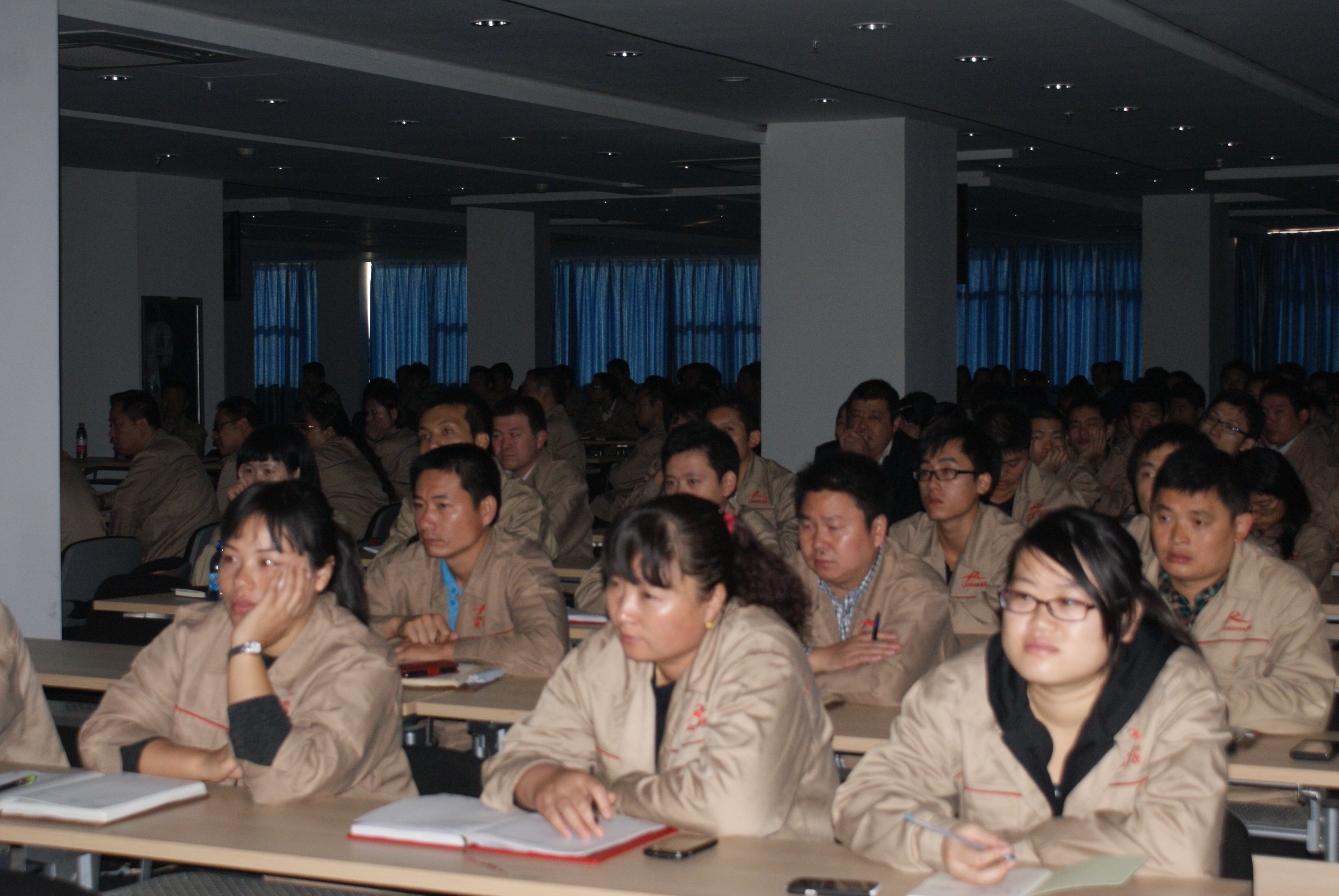浪莎創建學習型團隊,浪莎致力創建學習型團隊,通過各種形式的培訓給員工提供學習和提升的機會。包括專家講座、移動課堂、交流活動,觀看管理視頻、撰寫學習心得等方式。圖為部長聯席會的前奏,中層、高層管理人員一起觀看管理視頻,學習管理理念。