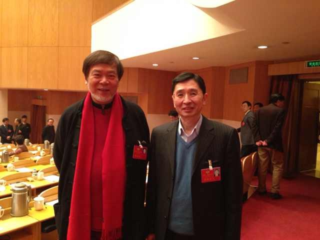 浪莎控股集團(tuán)董事局主席翁榮金與花鳥大畫家何水法合影