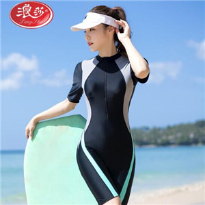浪莎LangSha速干泳衣女新品專業(yè)學游泳保守泳衣女學生連體大碼胖mm200斤遮肚顯瘦運動款泳裝 灰綠 4XL