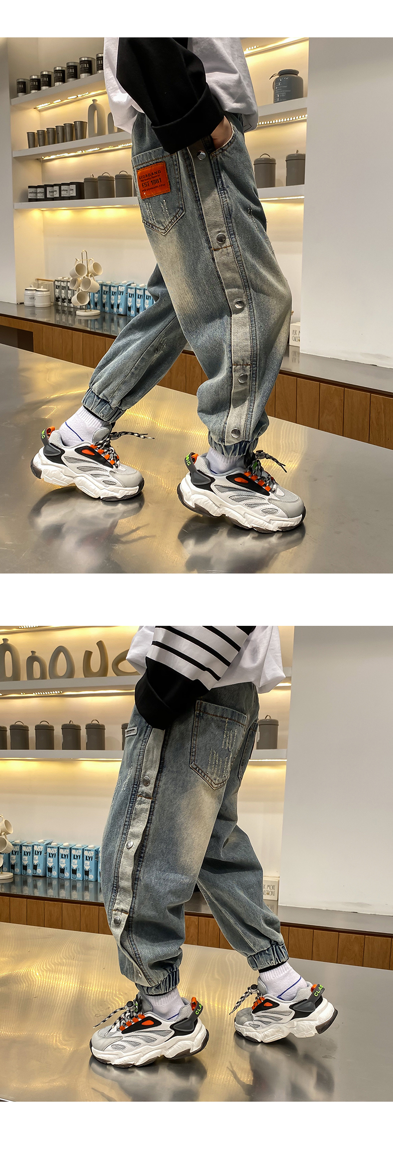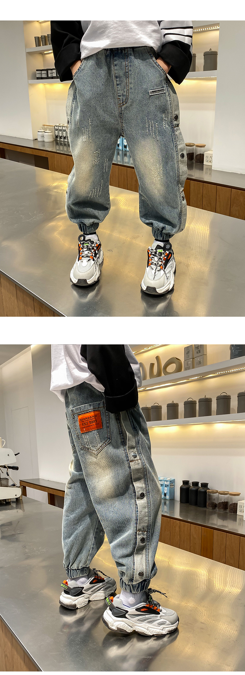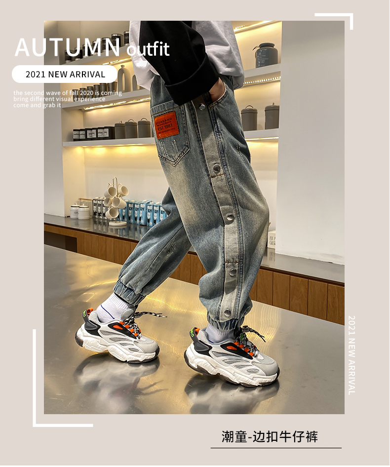 童裝男童洋氣邊扣牛仔長(zhǎng)褲兒童春夏褲子2021春裝新款中大童韓版潮