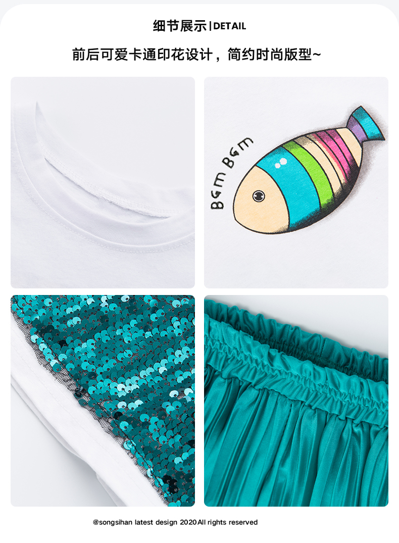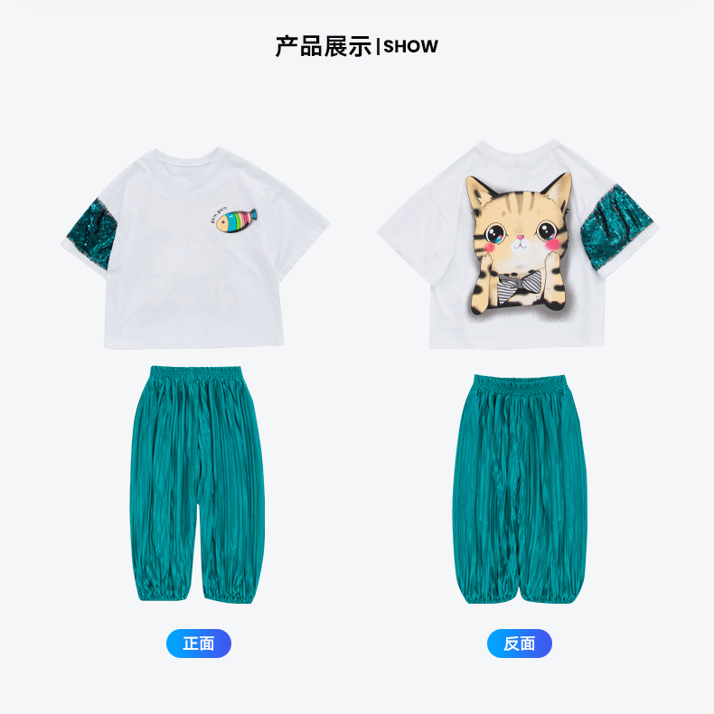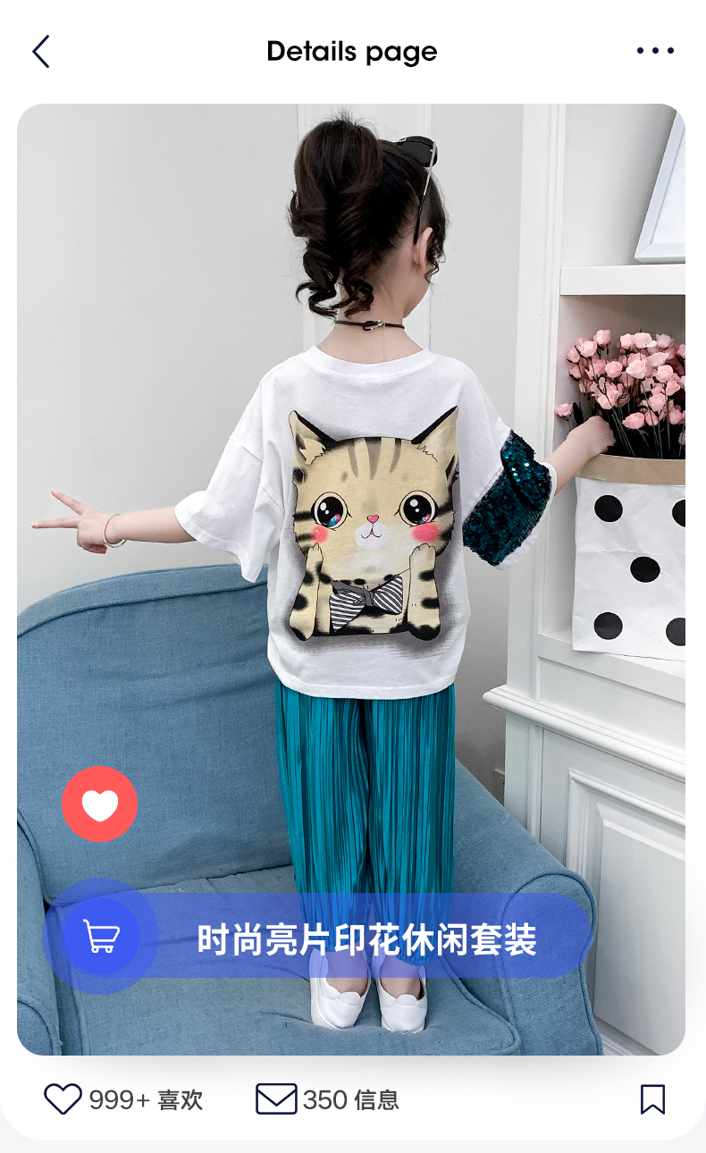浪莎童裝女童夏裝中大童洋氣t恤純棉短袖套裝兒童寬松冰絲防蚊褲
