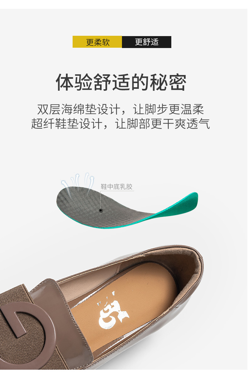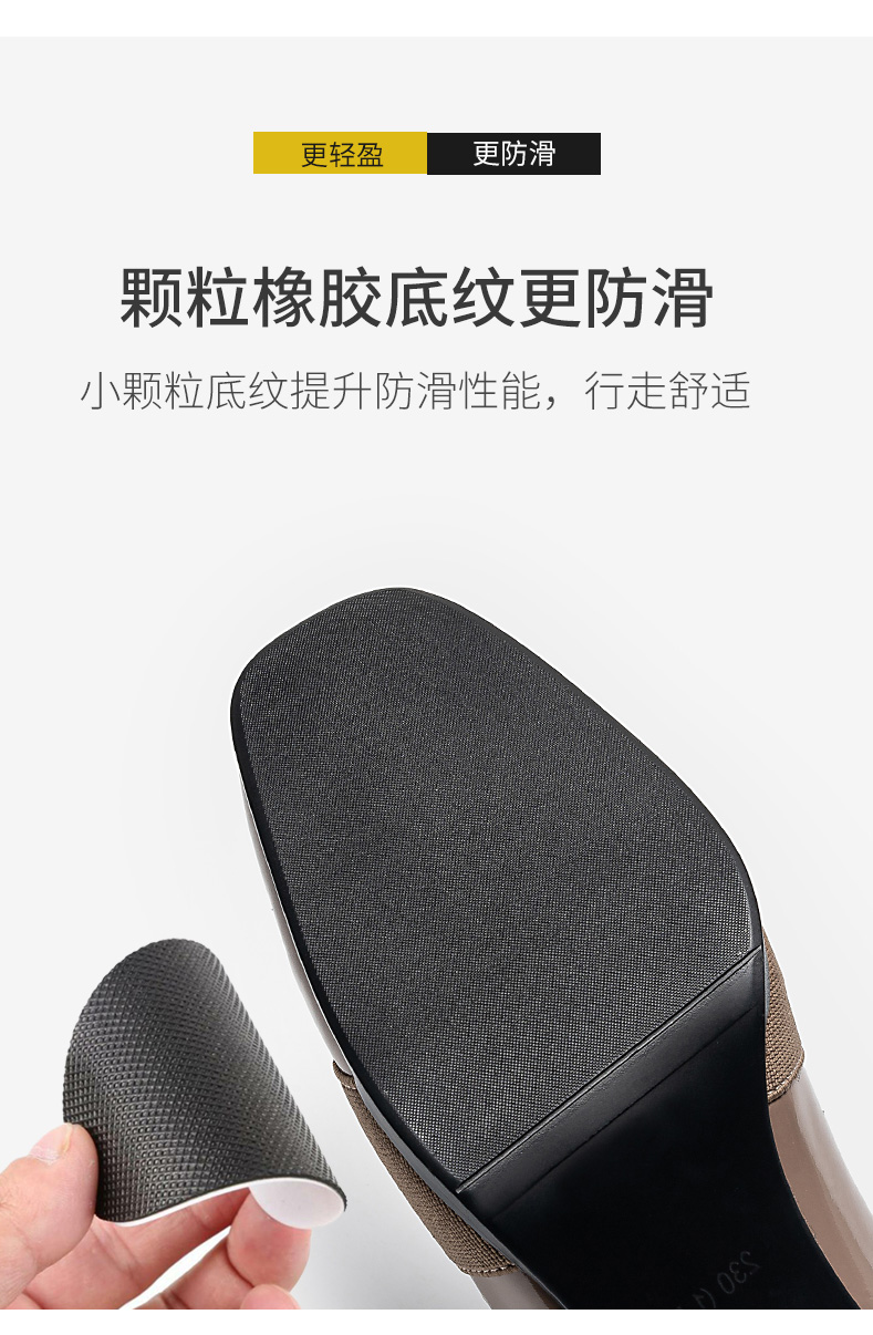浪莎粗跟單鞋女2021早春女鞋一腳蹬小皮鞋中跟方頭深口真皮樂福鞋