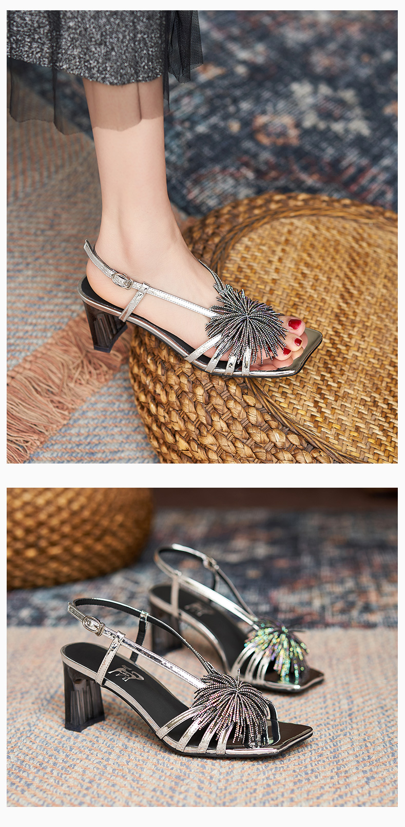 高跟涼鞋女2021年夏季新款仙女風氣質法式一字帶粗跟露趾時裝涼鞋