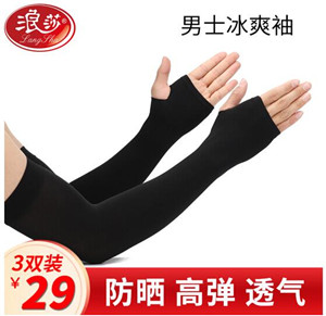 浪莎(3雙裝)冰袖 男 夏季防曬套袖男戶外遮陽防曬手套騎行防曬袖套LSSQ-A045-466三雙裝黑色露指款