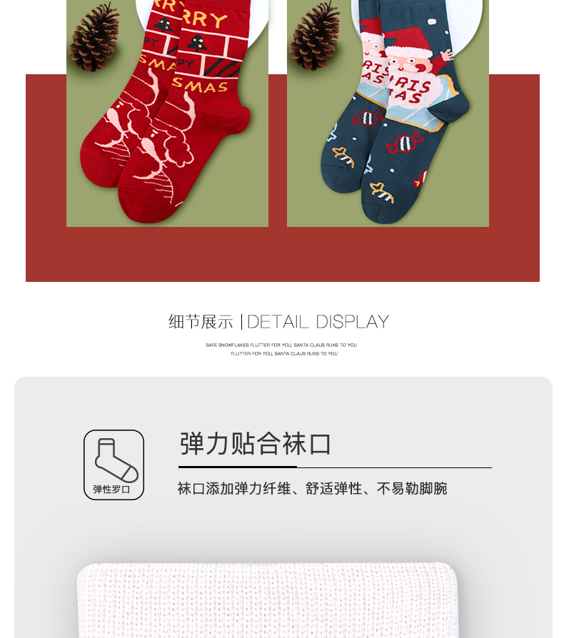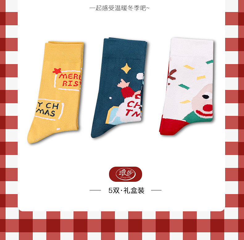 浪莎圣誕襪子女中筒襪秋冬季可愛本命年紅襪子圣誕節禮盒加厚棉襪