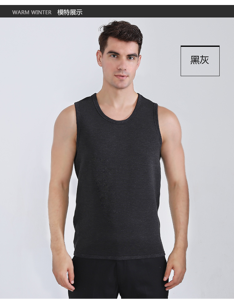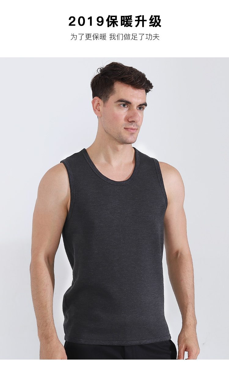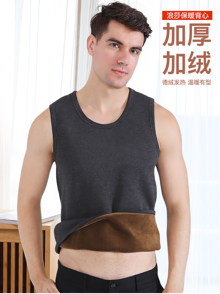 浪莎自發(fā)熱德絨保暖背心男士加厚加絨冬季上秋衣單件打底保暖內衣