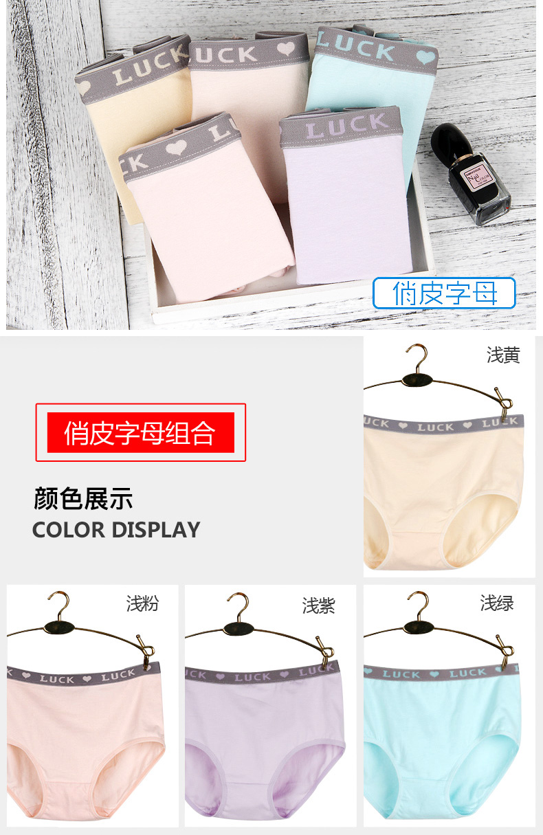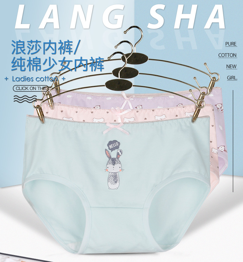 浪莎女士內褲女三角褲中腰春夏少女純棉面料透氣全棉日系女生褲衩